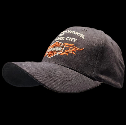 Harley Davidson Of NYC Dealer Bar & Shield Flames Baseball Cap Black